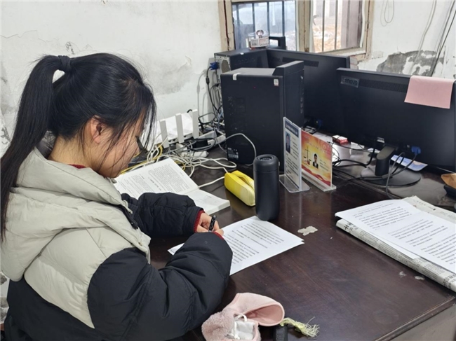 宋静静同学在村委会整理档案